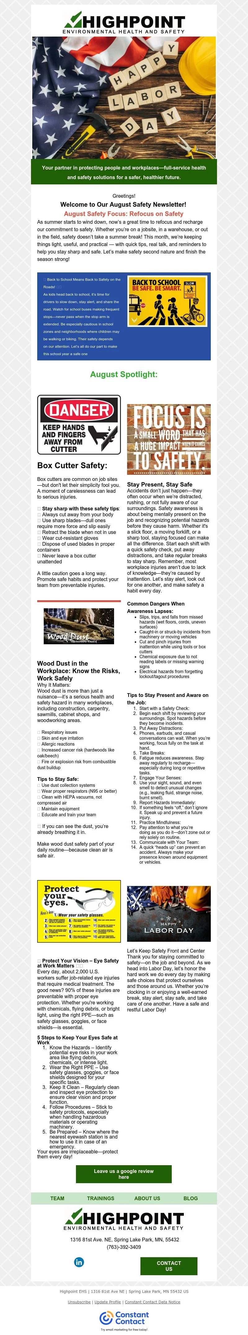 Highpoint EHS, 1316 81st Avenue Northeast, Spring Lake Park, MN, 55432, United States(763) 392-3409info@highpointehs.com